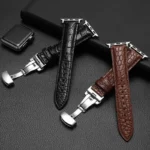 This Alligator Leather Apple Watch Strap features stainless steel connectors and a matching buckle, ensuring a secure and seamless fit with all Apple Watch models (including Series 1–9, SE, and Ultra). The classic buckle design not only adds to the traditional appeal but also provides reliable adjustability for different wrist sizes.