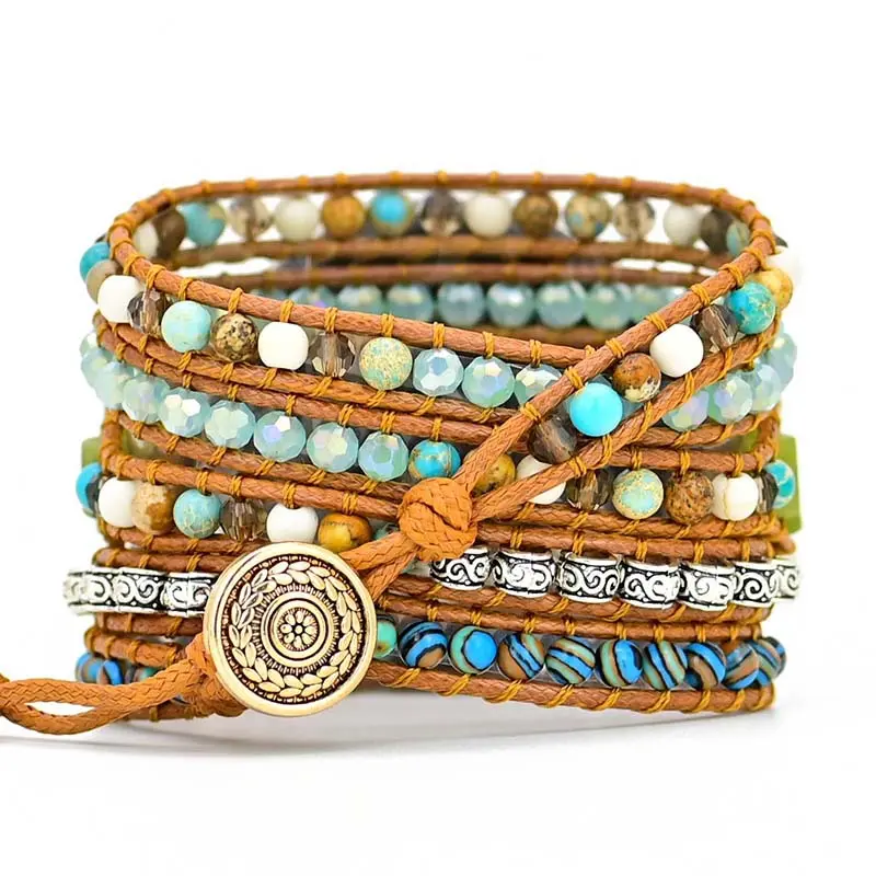 Crafted with high-quality waxed cord, the Bohemian watch band provides both comfort and durability. The handwoven design is meticulously created by skilled artisans, ensuring every strand and stone is placed with precision. The band wraps around your wrist in a multi-layered fashion, creating a beautifully textured look. This multi-functional piece easily transitions from a stylish bracelet to a watch strap, giving you the freedom to wear it in various ways, adapting to your daily needs and style preferences.