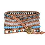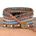 Each bead is meticulously handpicked from natural stones and high-quality crystals, known for their unique vibrational energies that promote emotional balance, clarity, and protection. Stones and crystals have been cherished for centuries as tools to enhance personal well-being and spiritual growth. This band’s five-layer wrap design creates a dynamic, textured look that symbolizes the layers of life’s journey — resilience, growth, and harmony.