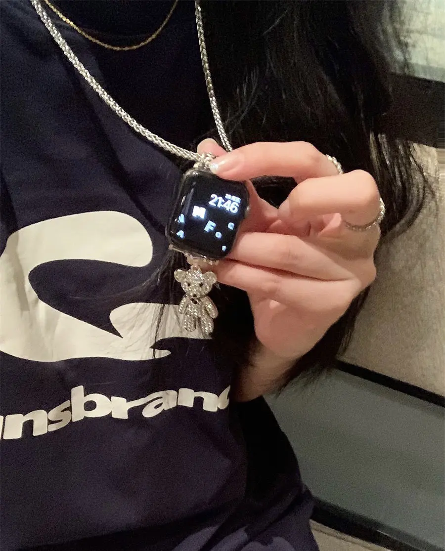Designed for ease of access and elegant wearability, the Apple Watch pendant holder wraps around your neck like a stylish necklace while firmly holding your device in place. Whether you’re heading to a social gathering, working in a hands-on environment, or simply looking for a comfortable, wrist-free alternative, this necklace offers both practicality and a unique, high-fashion look.