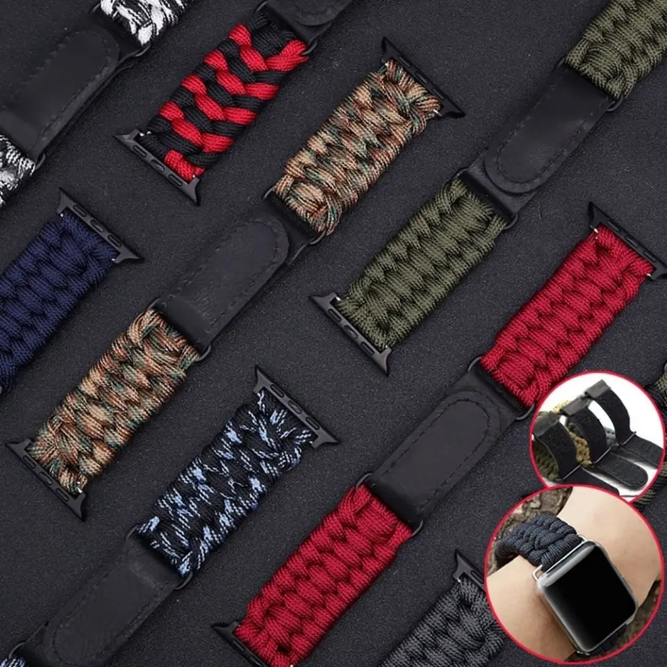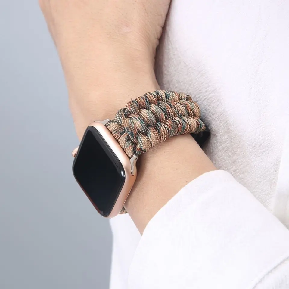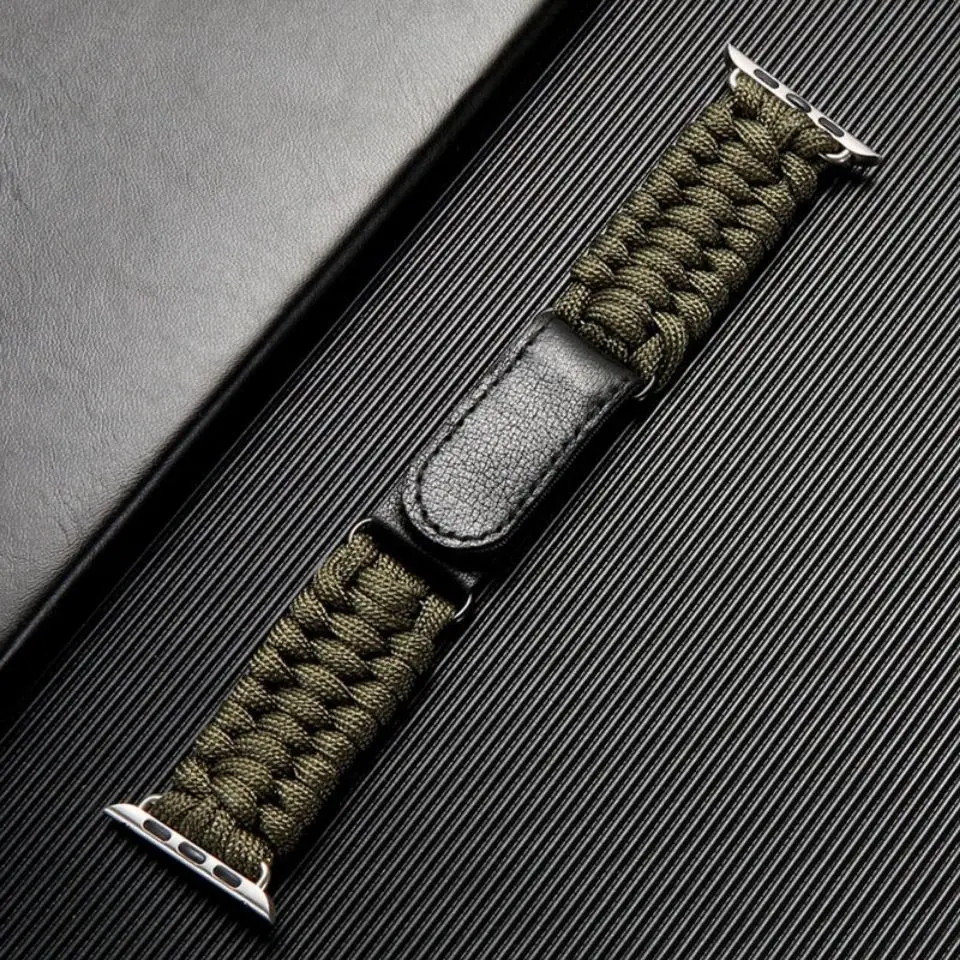 Upgrade your Apple Watch with rugged utility and adventurous spirit through this Paracord Braided Nylon Strap with Leather Buckle and Velcro Closure, perfectly designed for explorers, outdoor lovers, and those who value durability with a touch of tactical style.