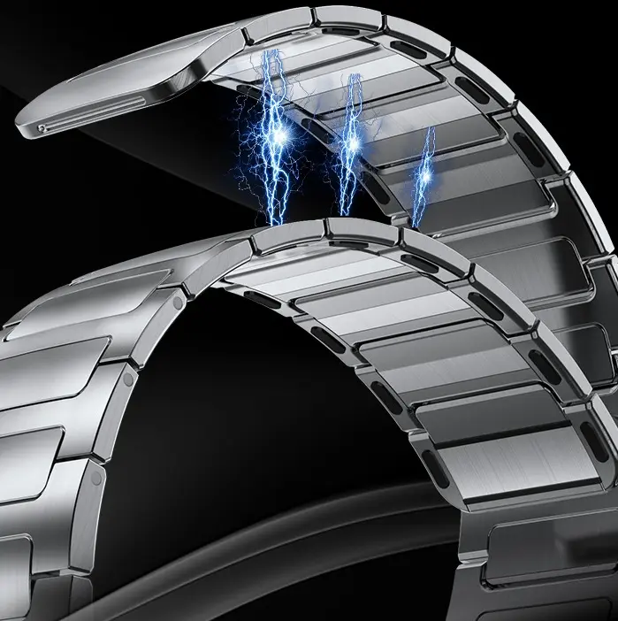 The standout feature is the integrated magnetic clasp—an easy-to-use, secure closure system that eliminates the need for traditional buckles or holes. Simply snap it into place and enjoy a snug, custom fit that adjusts instantly. It’s ideal for users seeking a clean, minimal interface with their smartwatch.